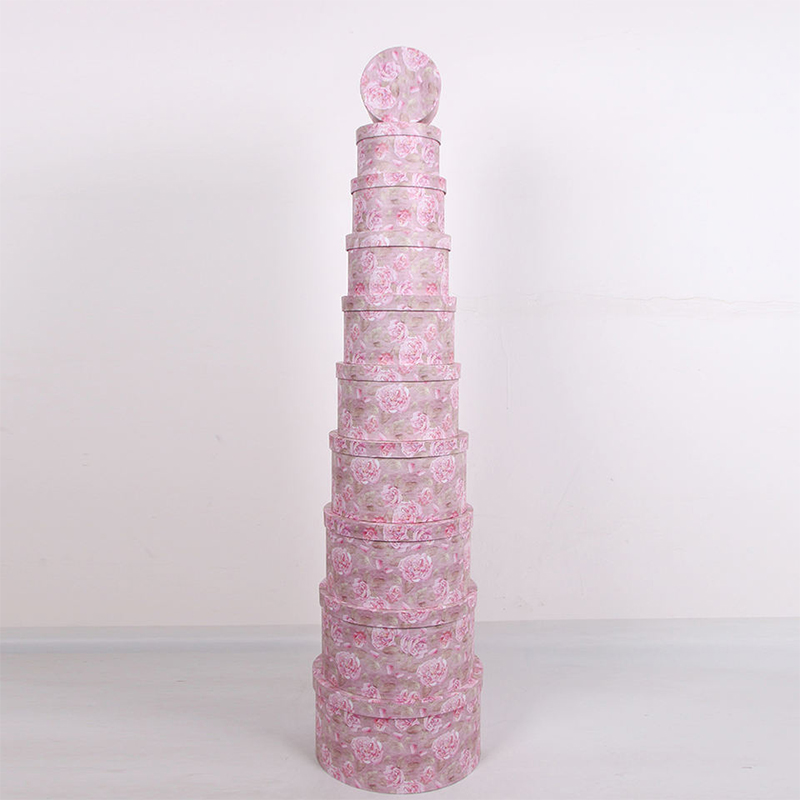 Ce coffret cadeau empilable à plusieurs niveaux présente un design circulaire, composé de plusieurs boîtes de taille croissante. L'ensemble peut être empilé en forme de tour, économisant ainsi de l'espace de stockage et de transport tout en offrant un excellent attrait visuel.